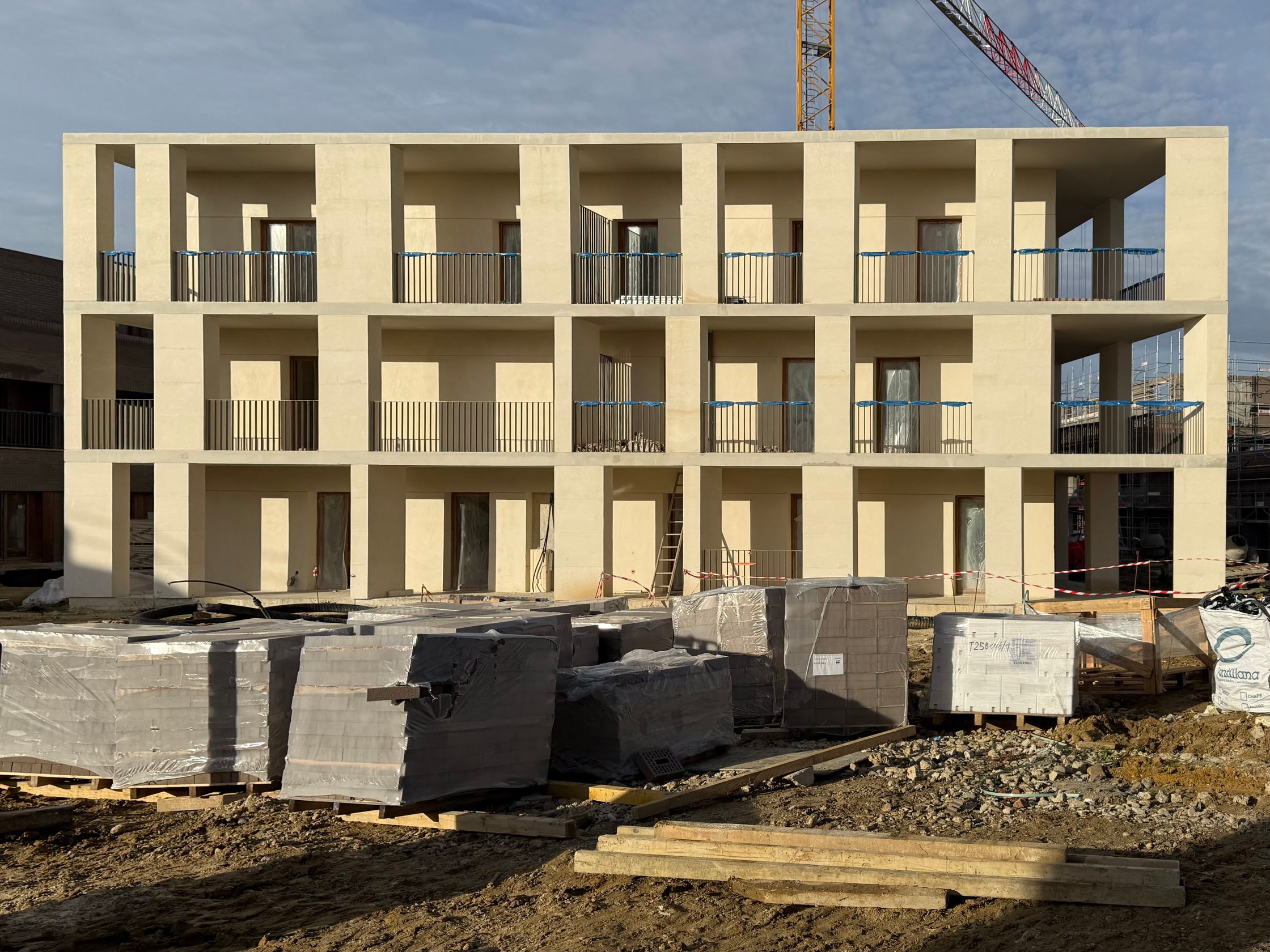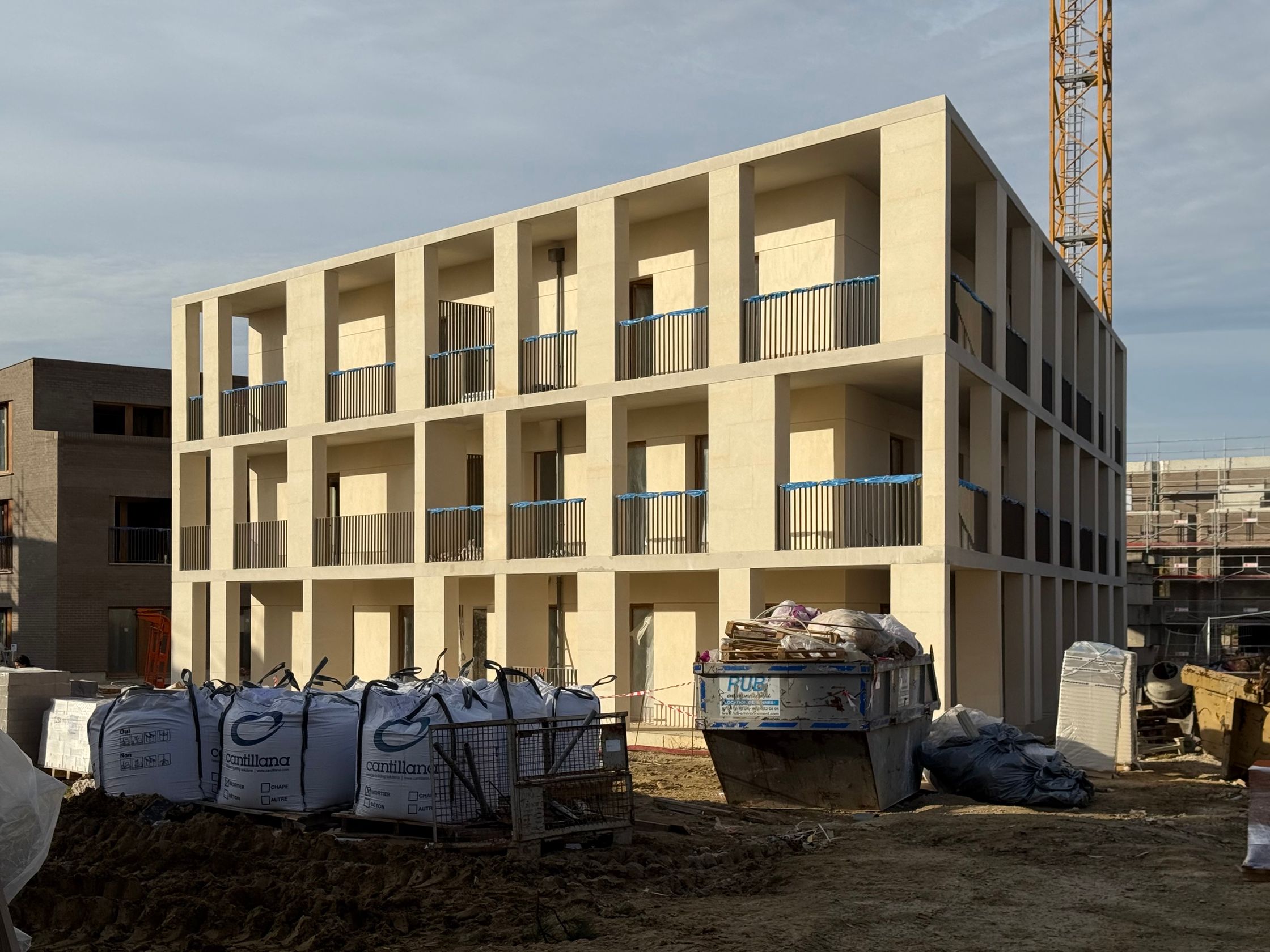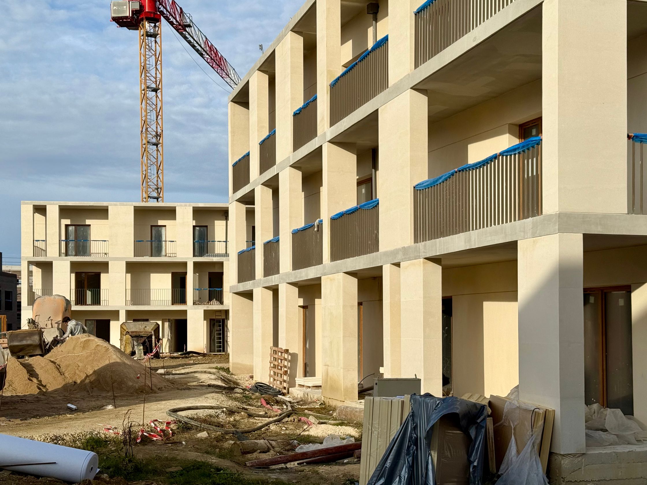 The apartments for ICADE are two simple blocks of stone, carved to give ample outdoor spaces for residents. The apartments sit in a private garden, framed by a ring of row-houses designed by Jean-Christophe Quinton Architects.
